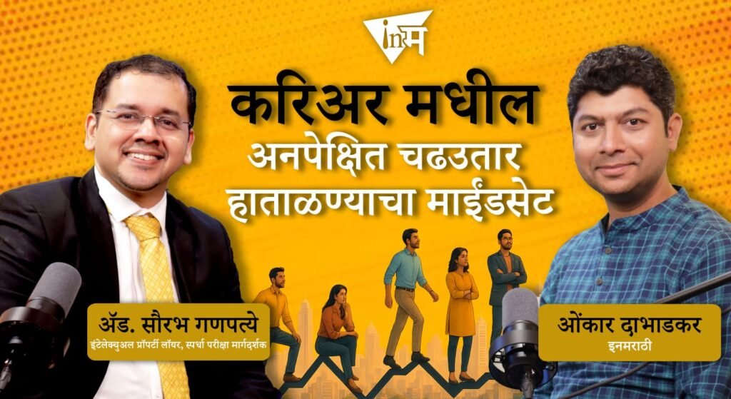 अॅड. सौरभ गणपत्ये यांनी देखील स्पर्धा परीक्षेतील अपयशातून एक अत्यंत यशस्वी आणि प्रेरणादायक करिअर घडवलं आहे. त्यांच्या या प्रवासाविषयी ‘इनमराठी मंथन’च्या या पॉडकास्टमध्ये रंगतदार गप्पा झाल्या आहेत. हा संपूर्ण पॉडकास्ट तुम्ही येथे व इनमराठीच्या यूट्यूब चॅनलवर पाहू शकता!